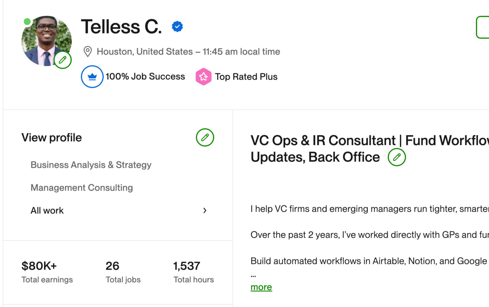 In early 2023, I was working at a private equity firm when the unexpected happened: I got laid off. To make matters worse, I only received two weeks of severance, and my third child was on the way. The stress was overwhelming—I suddenly found myself worrying about how I’d support my growing family without a stable paycheck.Desperate for a solution, I turned to the internet to explore new ways to earn an income. That’s when I discovered the world of online consulting. I started out small, taking on any project I could handle. But as I learned the ropes—identifying my niche, building a client base, and delivering real results—my income began to climb. Soon, I found myself making more money than I ever had in a traditional W-2 job.Most importantly, I’ve gained something even more valuable than income: freedom. Freedom to choose my hours, work with the clients I want, and be present for my family during some of the biggest milestones of our lives. Now, I’m here to show you exactly how I made this transition, so you can take control of your future and create a life and career on your own terms—no matter what challenges you’re facing.